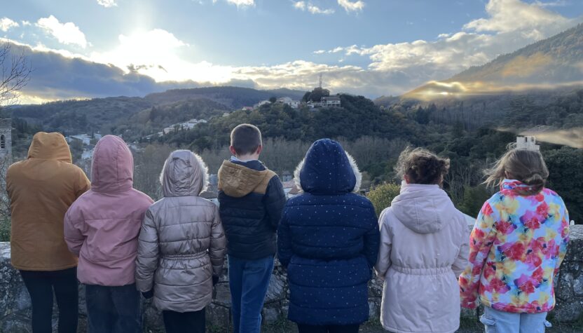 Les élèves de CM font l’école buissonnière pour aller admirer leur village de St-Pons paré des couleurs de l’automne!